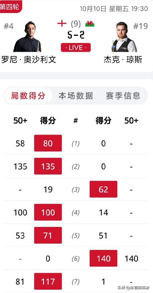 斯诺克最新战报:8强已出其6,5-1、5-2丁俊晖携手奥沙利文晋级!